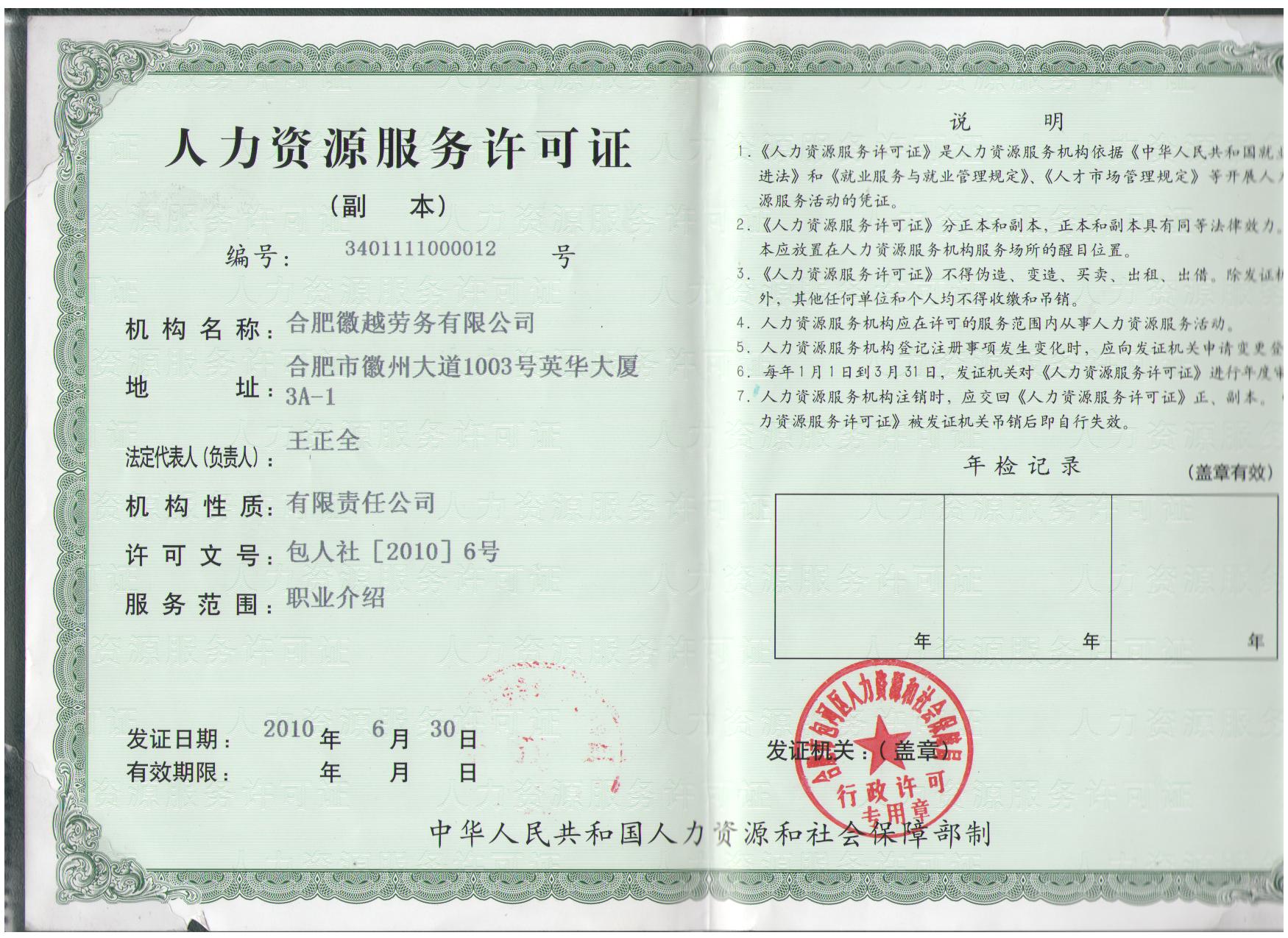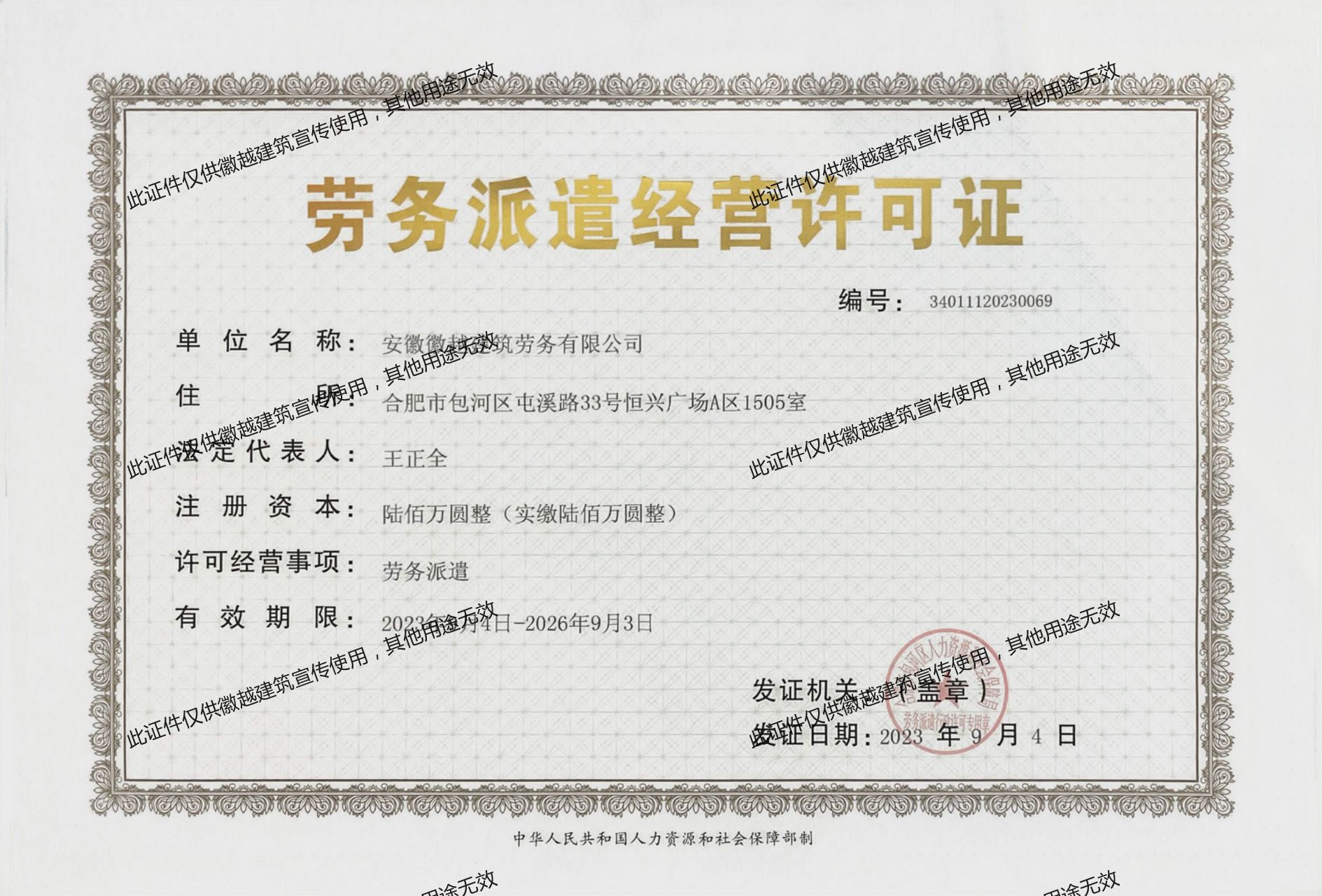 徽越公司自2008年中建總公司及多家世界500強企業授權招工資格以來,在同行業知名度信譽 度較高?;赵焦臼前不帐∫患医涍^合肥市工商行政管理局(安徽省工商行政管理局備案審核)、合肥市勞動和社會保障局及合肥市建設委員會(安徽省建設廳資質審批)審核批準成立的正規合法的且具有豐富建筑勞務輸出和項目施工管理經驗的信譽良好的勞務派遣和勞務分包...>>查看詳情